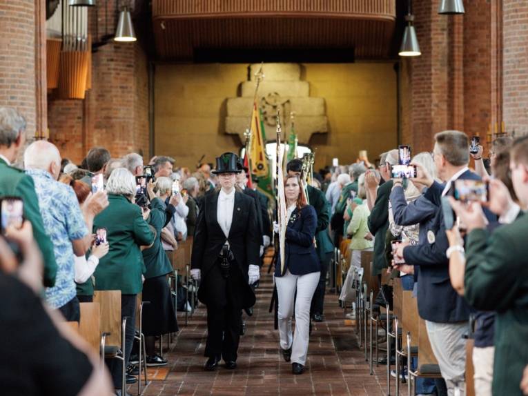 Bruchmeister*innen-Verpflichtung 2024 (9): Abmarsch © Ole Spata Nach dem Gottesdienst ging es für die Teilnehmer*innen direkt weiter zum Schützenplatz.