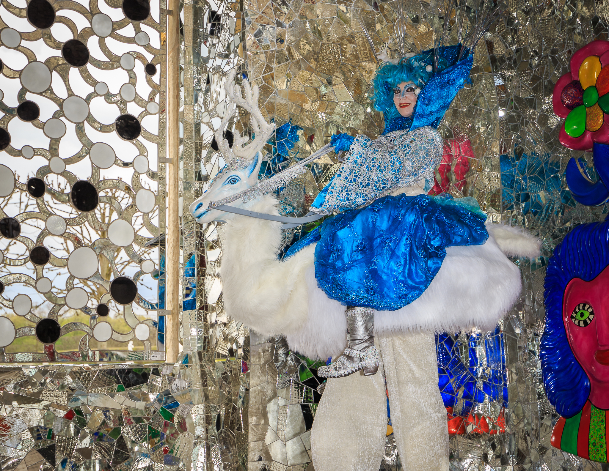 Janine Jaeggi mit ihrem Rentier von StelzenArt