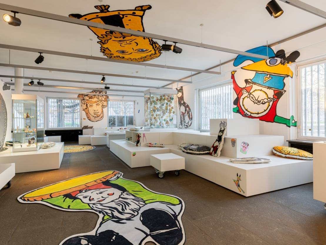 Gemeinsam mit dem Museumsteam wurde das SammleR*s von dem niederländischen Streetart-Kollektiv Kamp Seedorf und dem Gestaltungsbüro MAF. Studio (Amsterdam) gestaltet. Die Zeichnungen von Kamp Seedorf zeigen Objekte aus unserer Museumssammlung. Als sogenannte Paste-ups, Straßenkunst aus Papier und Kleister, sind sie großflächig auf Wände, Decken und Mobiliar aufgeklebt. Lasst das urbane Kunstwerk mit eigenen Paste-ups auf Decken, Wänden und Möbeln weiterwachsen!