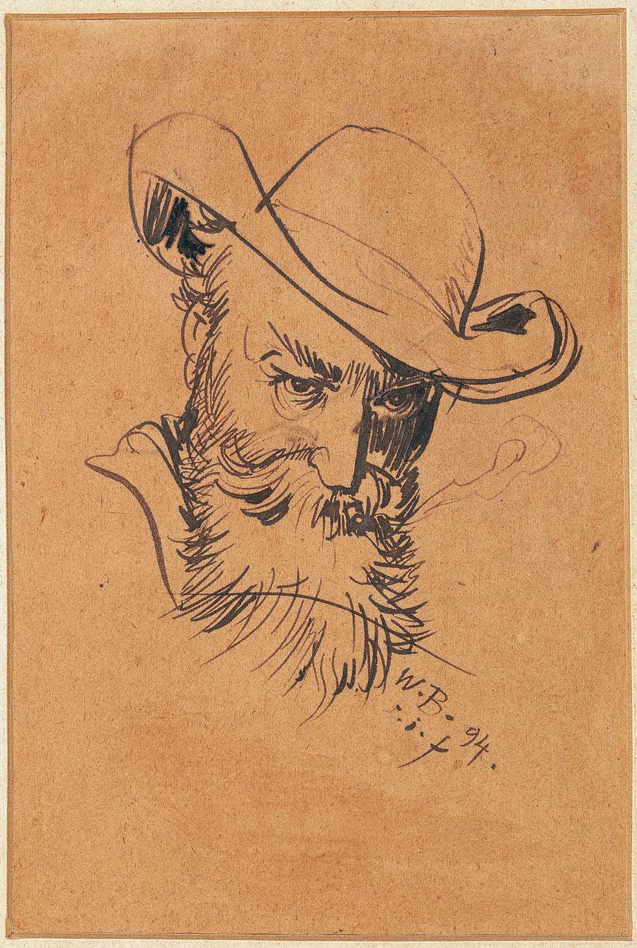 Wilhelm Busch (1832–1908),Selbstbildnis, 1894,Feder in Sepia; 15,2 x 10,4 cm