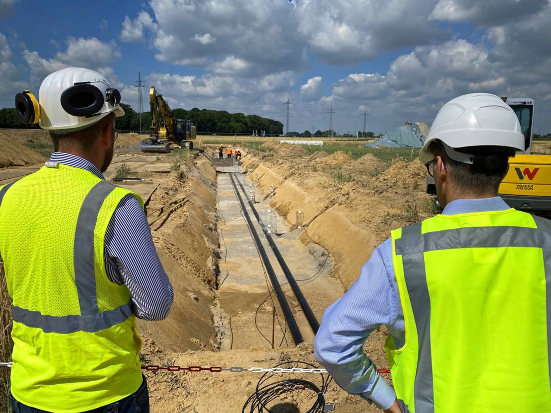 Zur Einrichtung des Versuchsfelds hat Tennet auf der 1,2 Hektar großen Fläche inzwischen sechs Gräben auslegen lassen. In drei dieser Gräben sollen rund 30 Meter lange Heizrohre verlegt werden, die die Wärmeabstrahlung der Erdkabel simulieren. Für voraussichtlich vier Jahre werden die beteiligten Wissenschaftler untersuchen, wie sich die Wärmeentwicklung auf den Boden und die darauf wachsenden Pflanzen auswirkt. „Bei dem Feldversuch geht es darum, die baubedingten und die betriebsbedingten Auswirkungen zu prüfen“, erläuterte Agrarwissenschaftler Marius Eckhoff bei einer Begehung. Um dies feststellen zu können, gebe es zum einen drei Gräben mit Heizrohren als Kabel-Attrappen und drei ohne solche Rohre. „Der Aushub wird so verfüllt, dass wir die natürliche Bodenschichtung wieder herstellen“, erklärte der Bodenkundler. Zum weiteren Vergleich gebe es zum anderen auf der gleichen Fläche sogenannte Referenzfelder mit ungestörtem Boden.
