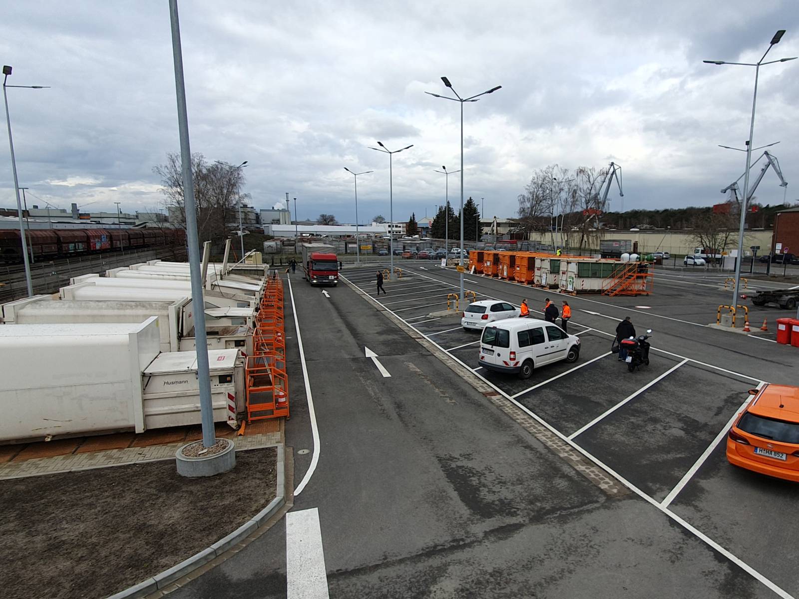 „Der Wertstoffhof befindet sich auf dem neuesten Stand der Technik. Wir haben hier eine große Rückstaufläche, ein Kundenleitsystem, ausgewiesene Halteflächen und einen über-dachten Bereich für Gefahrstoffe. Auch haben wir mehr Behältervolumen, um ein hohes Kundenaufkommen besser abfangen zu können. Das Beleuchtungssystem ist auf LED um-gestellt und auch das Sozialgebäude entspricht aktuellen Energiestandards.“, sagte aha-Geschäftsführer Thomas Schwarz. Der Anlieferverkehr findet getrennt von den Fahrten der aha-Lkws statt. Somit werden gefährliche Situationen vermieden und Wartezeiten wegen eines Containerwechsels entfallen.