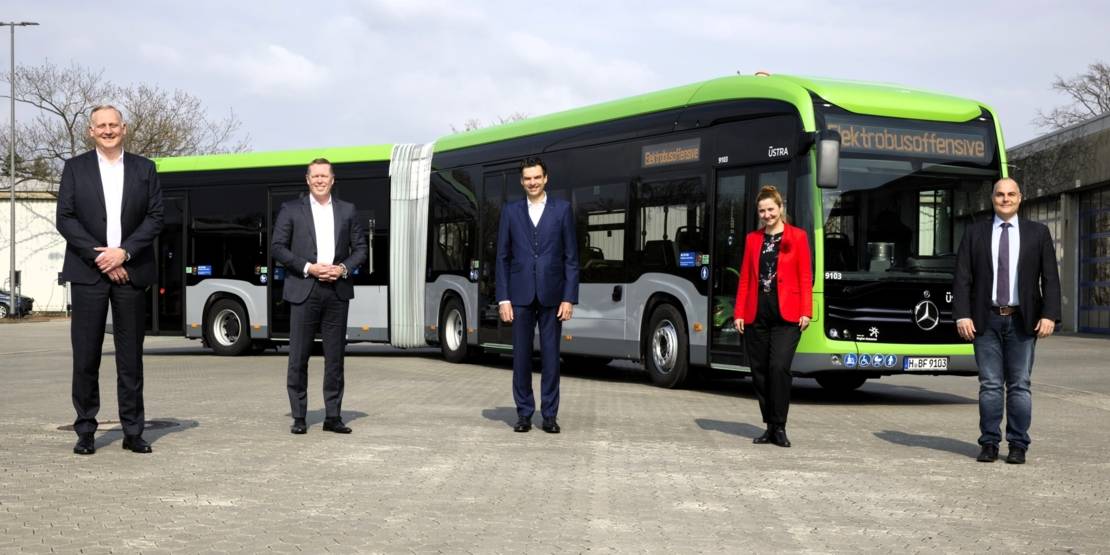Die neuen Fahrzeuge sind Bestandteil eines Auftrags der ÜSTRA über bis zu 48 Stadtbusse. Er setzt sich aus 30 Solobussen eCitaro und 18 Gelenkbussen eCitaro G zusammen. Die ersten eCitaro fahren bereits seit September vergangenen Jahres in Hannover. Mit ihrer Elektrobusoffensive möchte die ÜSTRA bis zum Jahr 2023 mit 48 Elektrobussen auf allen innerstädtischen Linien innerhalb der Umweltzone Hannovers elektrisch fahren. Durch die Umstellung können pro Jahr 3.800 Tonnen CO2 eingespart werden.