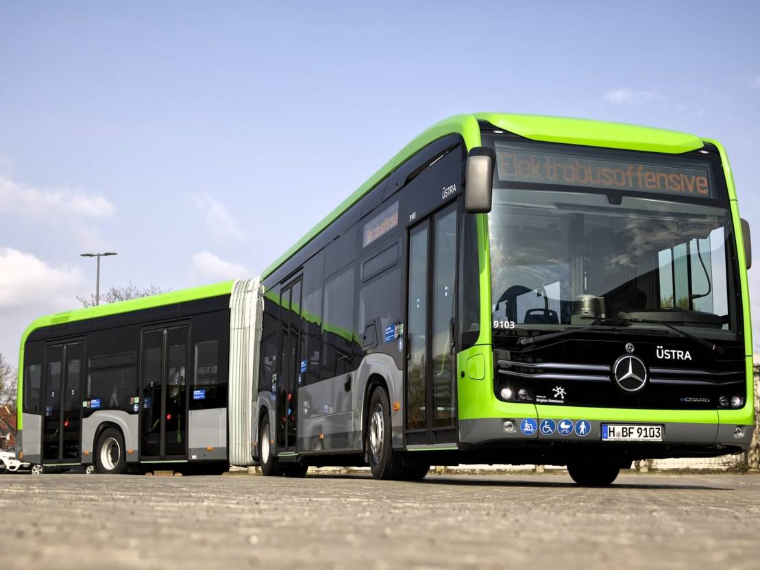 Die ersten Gelenkbusse des Typs eCitaro G wurden jetzt an den Verkehrsbetrieb ÜSTRA in Hannover ausgeliefert. Sie sind Teil eines Großauftrags und wesentlicher Bestandteil eines ehrgeizigen Vorhabens zur Elektrifizierung des Omnibusverkehrs in der niedersächsischen Landeshauptstadt.