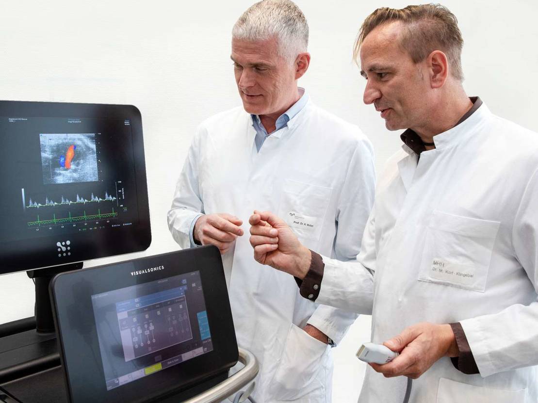 Herzinsuffizienz ist einer der Forschungsschwerpunkte an der Klinik für Kardiologie und Angiologie unter der Leitung von Professor Dr. Johann Bauersachs. "Bei Herzinsuffizienz versucht das geschwächte Herz, seine verminderte Pumpleistung auszugleichen, indem es an Muskelmasse zunimmt, also größer wird", erklärt Professor Wollert. Anders als bei einem trainierten Sportlerherz führt dieses Wachstum aber nicht zu einer besseren Herzleistung. Die einzelnen Herzmuskelzellen werden zwar immer größer, ihre Leistungsfähigkeit nimmt jedoch ab und das Organ wird durch die permanente Drucküberlastung immer schwächer. Von weißen Blutkörperchen ausgelöste Entzündungsprozesse verschlechtern die Herzfunktion zusätzlich. Es gibt allerdings Ausnahmen. Im Mausmodell hat das Forschungsteam eine Wechselwirkung zwischen bestimmten Entzündungszellen und Herzmuskelzellen identifiziert, die das Herz schützt. Eine entscheidende Rolle spielen Monozyten und Makrophagen. "Diese Entzündungszellen setzen bei Drucküberlastung MYGDF frei, welches das krankhafte Herzmuskelwachstum hemmt und die Funktion der Herzmuskelzellen verbessert", sagt der Kardiologe.
