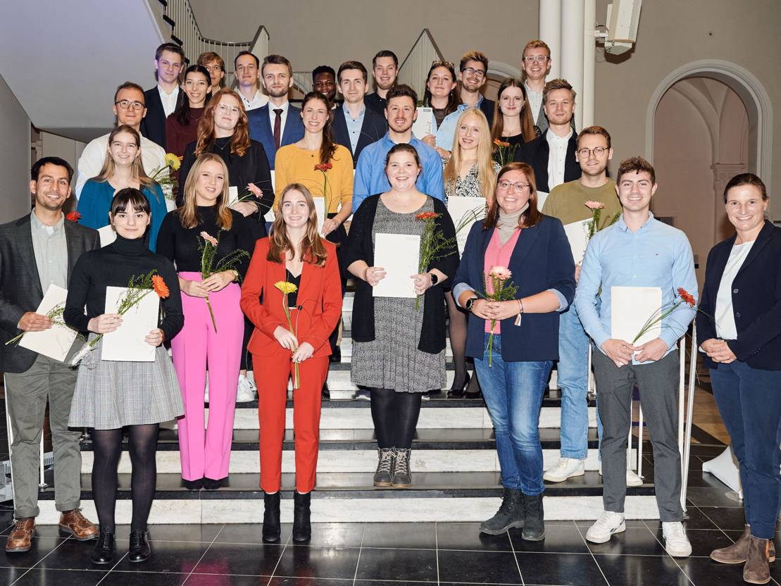 In ihrer Ansprache hob Julia Gillen insbesondere hervor, dass sich zahlreiche Arbeiten über die Bestnote hinaus durch inhaltliche oder methodische Innovativität auszeichnen und einen Beitrag zur Bearbeitung der aktuellen Herausforderungen unserer Zeit leisten. „Es ist faszinierend zu sehen, dass viele Bachelor- und Masterarbeiten an wesentlichen Fragen ihres Faches ansetzen und diese mit besonderem Interesse und klarem Forschergeist bearbeiten. Themen der Nachhaltigkeit stehen dabei besonders im Fokus der jungen klugen Köpfe. Da sind sie, die Gestalterinnen und Gestalter der Zukunft!“, sagte die Vizepräsidentin.