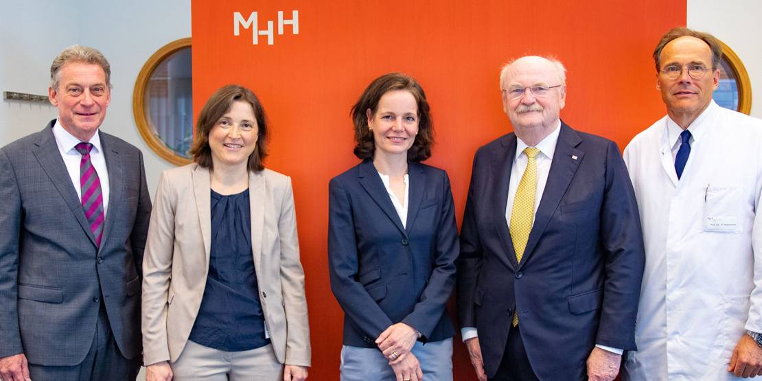 Dr. Jürgen Seja, Prof. Diana Steinmann, Dr. Sabine Schopp, MHH-Präsident Prof. Michael Manns und Prof. Peter Hillemanns.