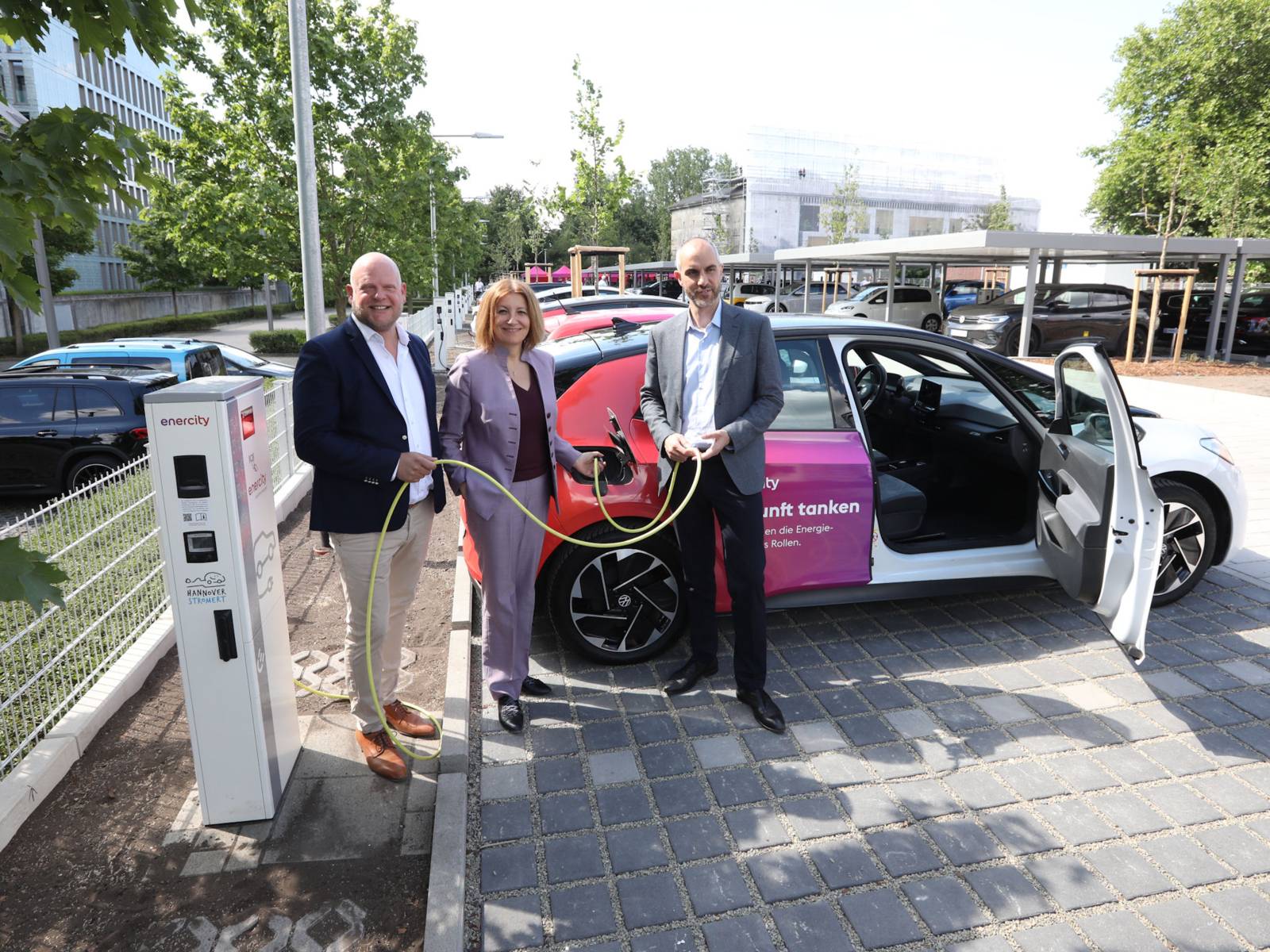Die E-Mobilität wächst mit leistungsfähiger Infrastruktur − im öffentlichen Raum, Zuhause und am Arbeitsplatz. enercity als Treiber der Mobilitätswende setzt erneut Maßstäbe und hat den nach eigenen Angaben größten Ladepark Norddeutschlands mit 90 Ladepunkten eröffnet. Dort stehen ab sofort 84 neue Parkplätze zum Standardladen (je 22 kW) und sechs für schnelles Laden (je 150 kW) für Anwohnerinnen und Anwohner in Hannovers Stadtteil List bereit. enercity hat dafür rund 1,8 Millionen Euro investiert. Mit dem Ladepark baut das Unternehmen sein Engagement im Bereich E-Mobilität weiter aus. Ziel ist es, die Zahl eigener Ladepunkte bis zum Jahresende von 3.500 auf über 4.500 zu steigern, davon mehr als 500 öffentliche in Hannover. „Der Ausbau der Ladeinfrastruktur ist wichtig für die Verkehrswende und für eine klimaneutrale Stadt. Der neue Ladepark in der List ist ein weiterer bedeutender Schritt auf diesem Weg“, sagt Hannovers Oberbürgermeister Belit Onay. „Wir sind in eine Ära eingetreten, in der Kraftstoffkosten für Benzinautos deutlich teurer sind als für E-Autos − derzeit nahezu doppelt so teuer. Das wird bald zu einer noch größeren Dynamik bei der Verbreitung von E-Fahrzeugen führen. Mit dem neuen Vorzeigestandort im direkten Wohn- und Arbeitsumfeld knüpfen wir Hannovers Ladenetz noch enger, damit wir darauf gut vorbereitet sind“, sagt enercity-Chefin Dr. Susanna Zapreva.