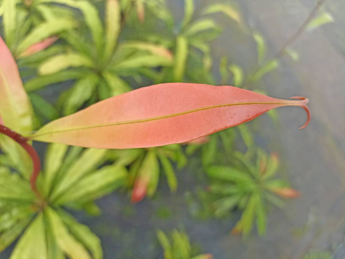 Ein Blatt von Triphyophyllum peltatum, das beim Wechsel ins Lianenstadium Haken ausbildet.