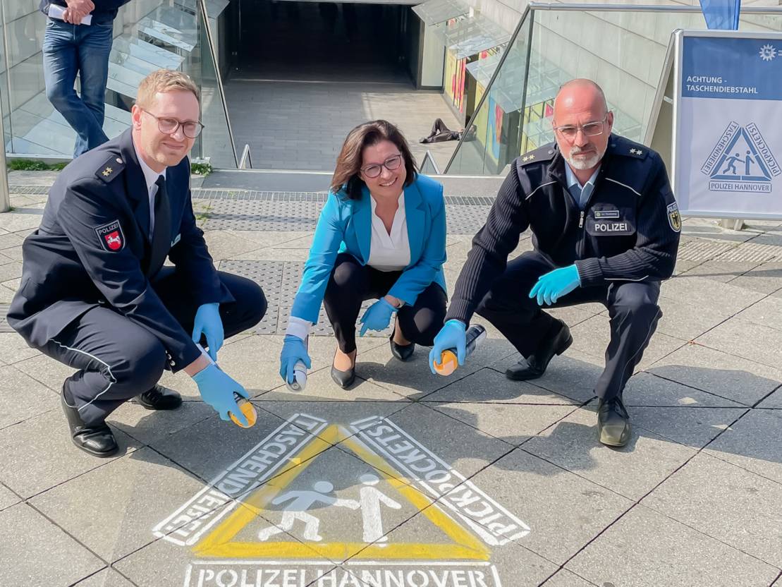 Die Sprühhinweise werden künftig bei Wochenmärkten, Stadtfesten und Großveranstaltungen zu sehen sein – und sollen durch ihre Präsenz ein deutliches Signal senden: Taschendiebe haben in Hannover keinen Platz.