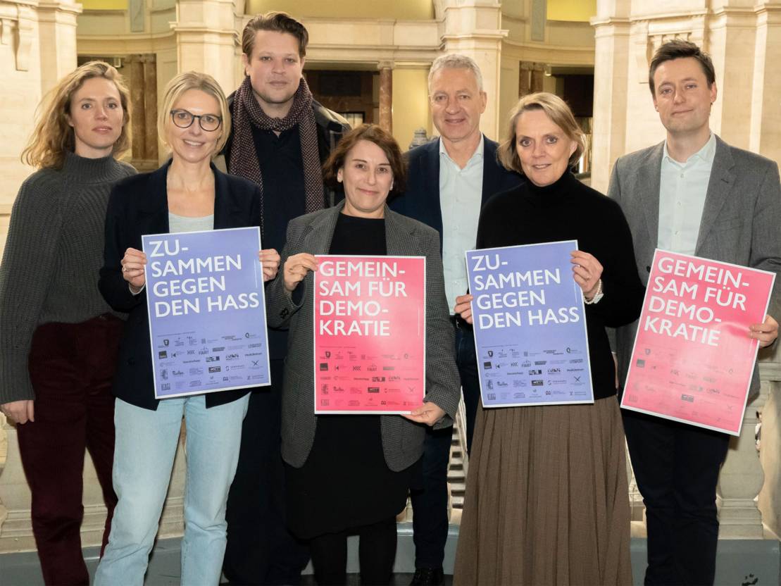 Die gemeinsame Aktion von rund 50 Kultureinrichtungen in Hannover startet am 12. Februar (Montag). Mit den Slogans „Gemeinsam für Demokratie“ und „Zusammen gegen den Hass“ sind in Hannovers Innenstadt Plakate und Banner zu entdecken. Sie sollen sichtbar machen, dass Hannovers vielfältige und lebendige Kulturlandschaft ein verlässliches Rückgrat der Demokratie ist.