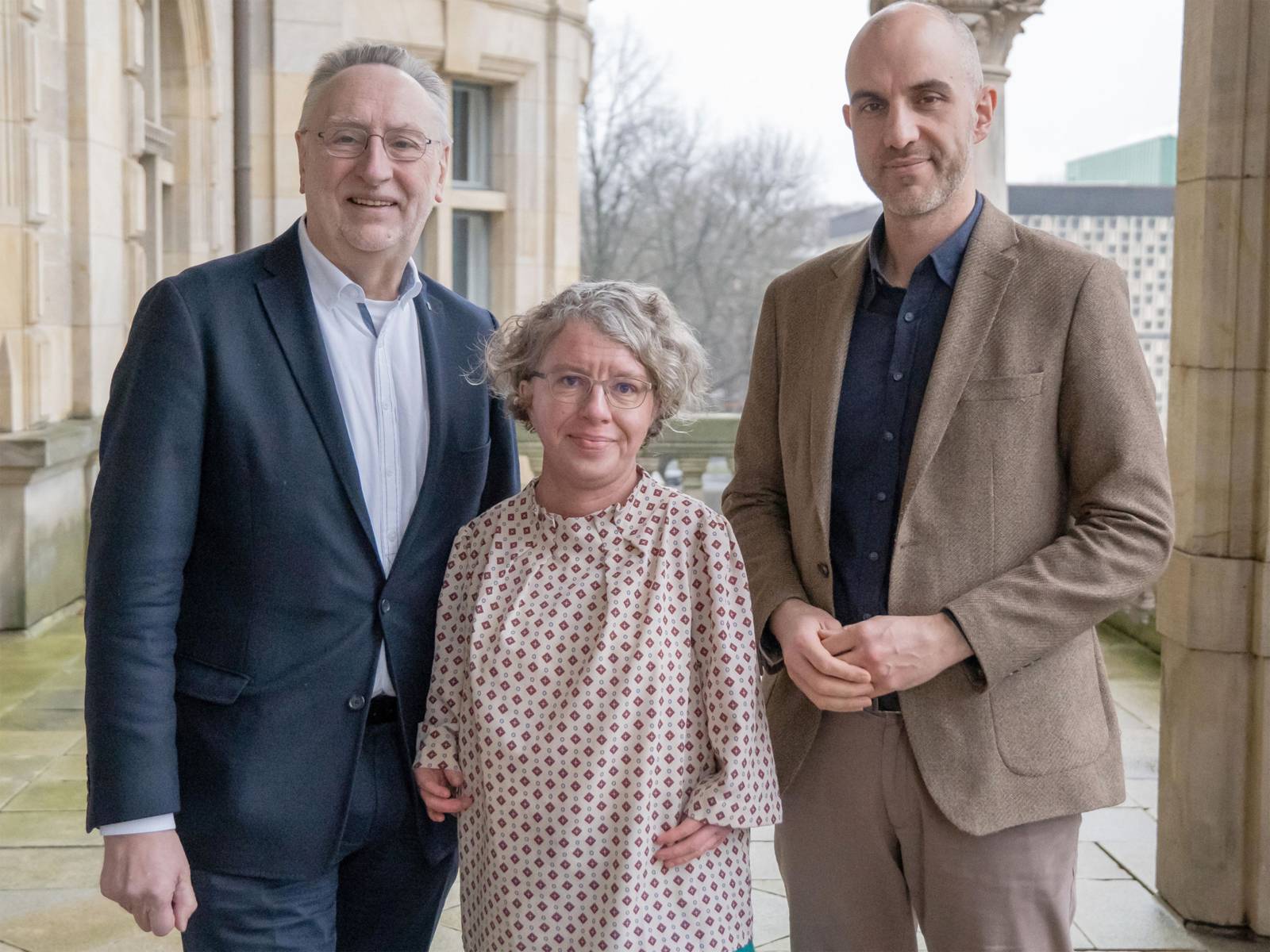 v.l.n.r.: Bernd Lange (niedersächsischer SPD-Europaabgeordneter), Katrin Langensiepen (niedersächsische Grünen-Europaabgeordnete) und Oberbürgermeister Belit Onay