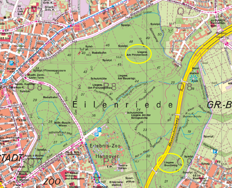 Lageplan der Blühwiesen in der Eilenriede