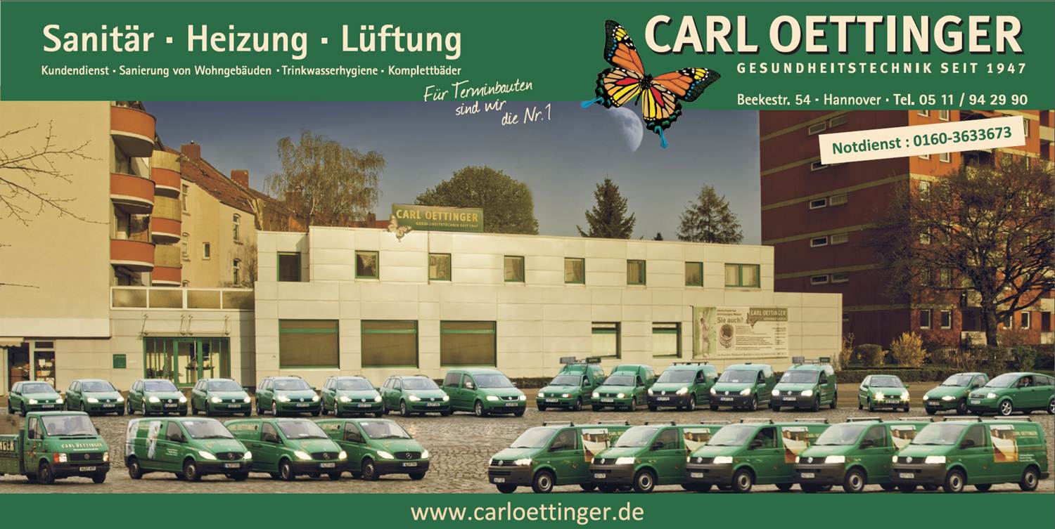 Carl Oettinger Gesundheitstechnik ist ein Spezialist mit jahrzehntelanger Erfahrung rund um Sanitär, Heizung, Lüftung. Was 1947 als Klempnerbetrieb in Ricklingen begann, ist heute ein modernes, mittelständisches Familienunternehmen. Ein Handwerksbetrieb, der sich durch ein Höchstmaß an Qualität, Motivation und Termintreue auszeichnet sowohl für Privat- und auch Gewerbebau.