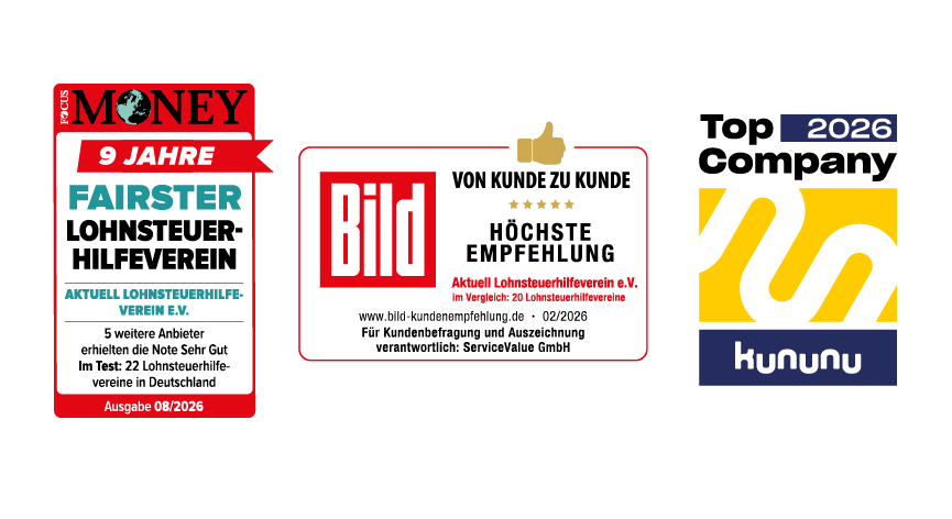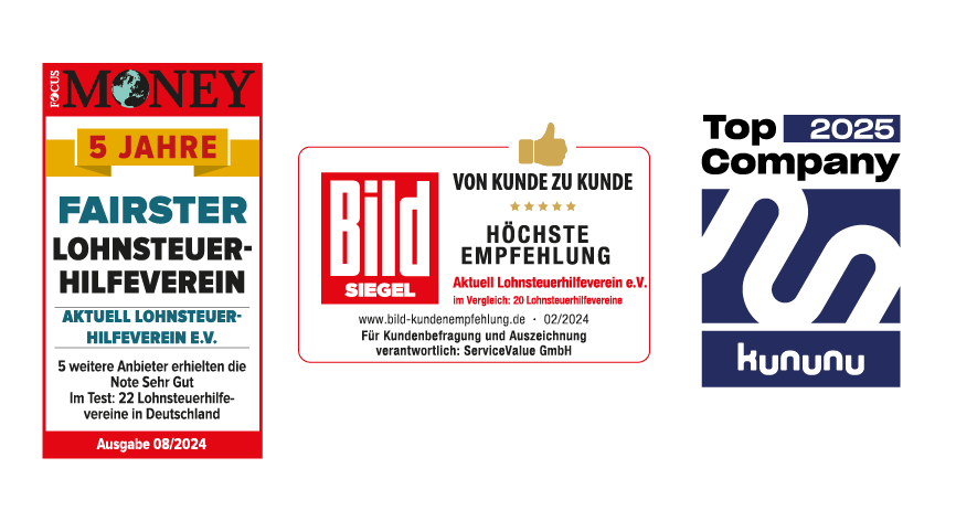 Übrigens: Der Aktuell Lohnsteuerhilfeverein e.V. ist mehrmals ausgezeichnet!