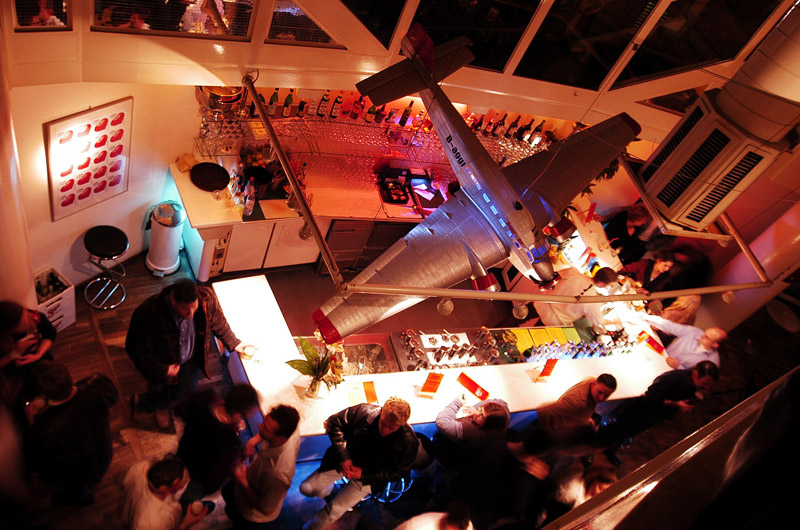 - Mittig eine Tanzfläche und außen herum sind drei Bars angeordnet